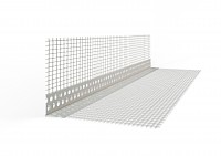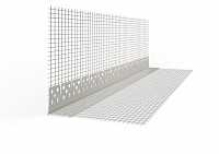 PVC-weefselbeugel voor de vorming van randversterking in ETICS-systemen. Door de flexibiliteit van het profiel kunnen ook randen met hoeken tussen ca. 45 ° en 150 ° worden uitgevoerd.